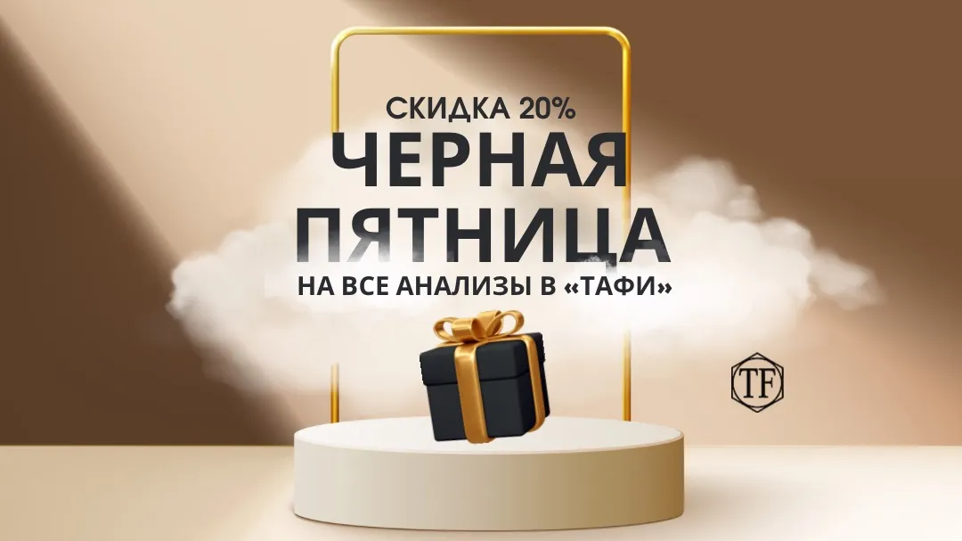 В эту Черную Пятницу - 25, 26 и 27 ноября - во всех филиалах сети медицинских лабораторий "ТАФИ-Диагностика" на все анализы скидка 20%.